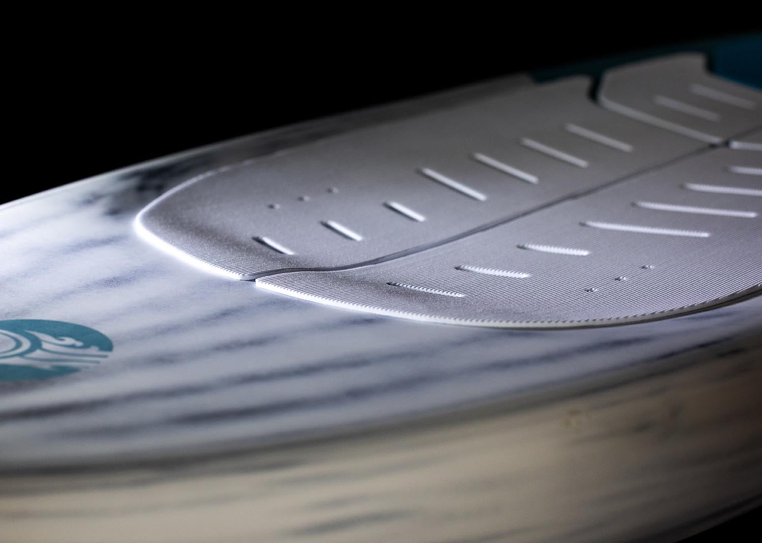 The new double concave nose provides not only directional stability when getting up and riding and when touching down, but also allows for caclulated water displacement when touch downs occur when riding or after jumps.